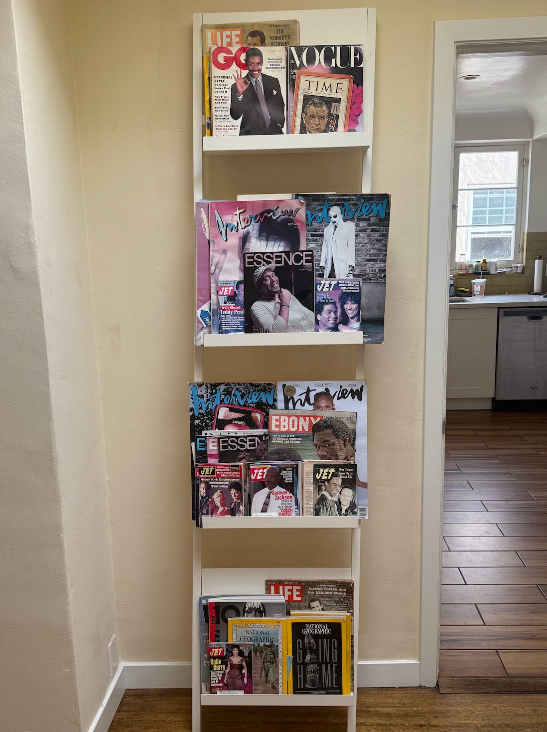 I love print, it is a passion of mine — being in it, collecting it, displaying it. I have a magazine rack in my house, where I display the current offerings. It makes me happy every time I walk by.